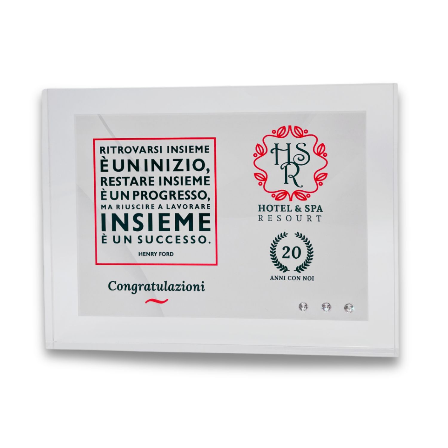 - Stampa Diretta Mediante UV 4 Colori CMYK + WHITE sul Retro della Lastra per un Effetto Davvero Moderno che Va ad Esaltare Grafica e Testo.
